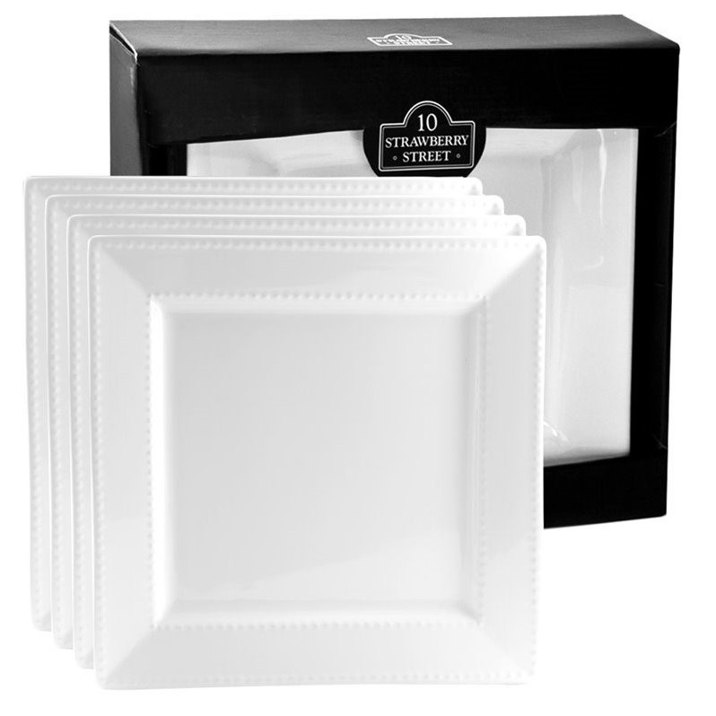| 10 Strawberry Street Beaded Square Dinner Plate in White (Set of 4) |