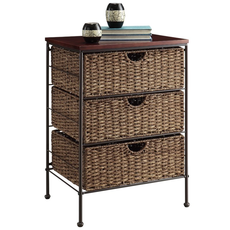 ![]() 4D Concepts - Accent Chests - 264069 - The Farmington three drawer maize weave chest lets you add that needed storage in style! The chest comes with hand crafted, flat packed drawers that are quick to assemble, which are woven over a metal frame to give it the strength needed to support your storage needs. The three drawers rest on a metal rail on the frame and come with a stop on the back. The contoured drawer fronts allows the drawer to open with ease. The added solid wood top is great for displaying your favorite pictures, vase of flowers, etc. Constructed of metal, wicker and wood. Clean with a dry non abrasive cloth. Assembly required.Finish: BrownMaterials: Metal, wicker and wood3 drawers which rest on a metal rail on the frame and come with a stop on the backClean with a dry non abrasive clothSpecifications:Overall Product Dimensions: 26.2"" H x 18.3"" W x 13.7"" DProduct Weight: 17 lbs Price: 102.99 |