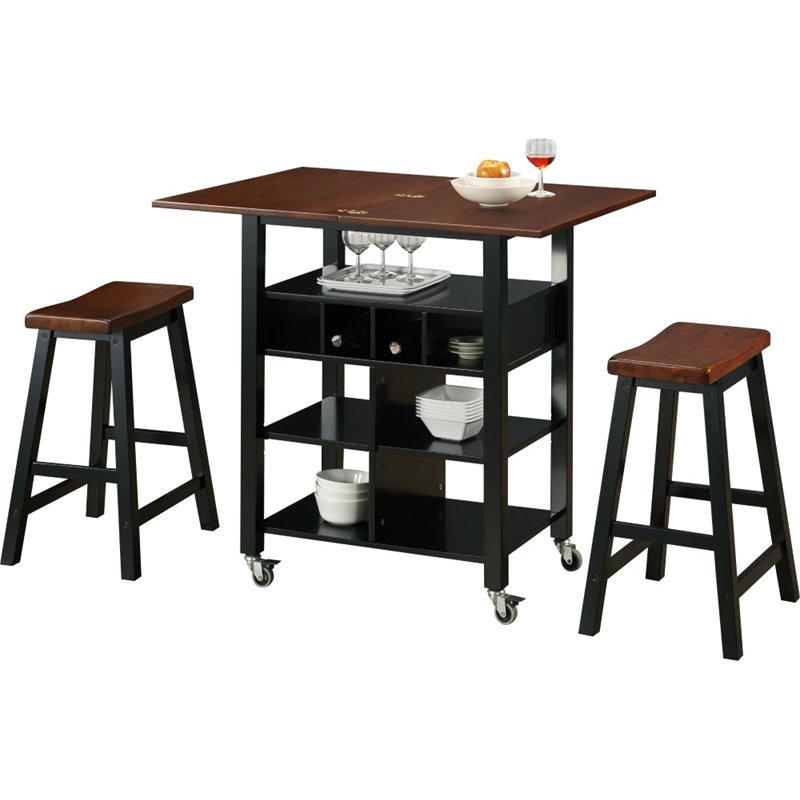 | 4D Concepts Phoenix Kitchen Cart in Black with 2 Stools |