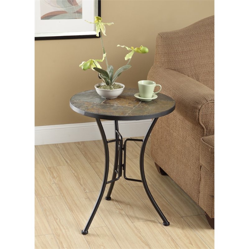 ![]() 4D Concepts - End Tables - 601404 - What a beautifully crafted round steel and natural rustic slate end table. This end table is perfect for any room of the house. This unit can be moved wherever you need an additional table. The metal is finished in a rich powder coated black which gives it a distinct look. The beautifully tapered legs flair out at the bottom to give the table a unique and durable look. Constructed of metal and stone. Clean with a dry non abrasive cloth. Assembly required.Finish: SlateMaterials: Metal and stoneMetal is powder coatedClean with a dry non abrasive clothSpecifications:Overall Product Dimensions: 22"" H x 19.7"" W x 19.7"" DProduct Weight: 18 lbs Price: 65.99 |