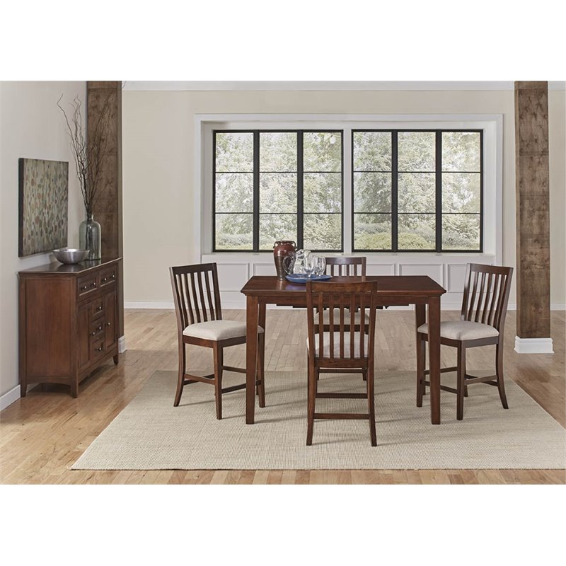 ![]() A-America - Dining Sets - WSC673356 - Finish: Cherry BrownMaterial: Solid WoodIncludes Table, 4 Chairs, ServerSpecifications:Table Dimensions: 36"" H x 54"" W x 54 "" DTable Weight: 102 lbsChair Dimensions: 40.5"" H x 17.75"" W x 21.5 "" DChair Weight: 15 lbsServer Dimensions: 41"" H x 60"" W x 18.5 "" DServer Weight: 121 lbs Price: 3298.00 |
