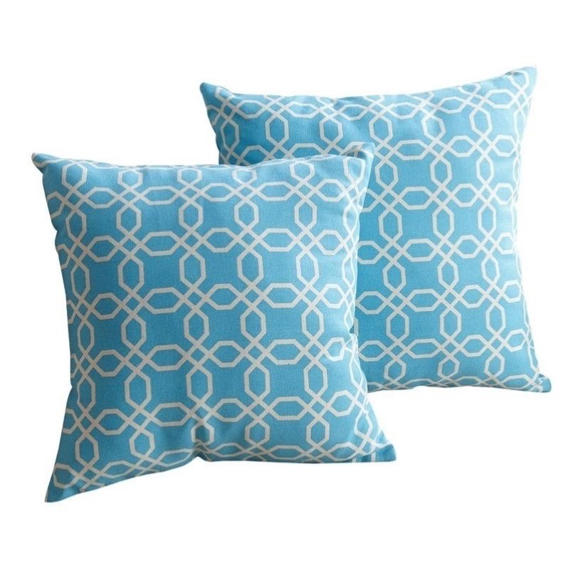 | Abbyson Living Cotton Linen Square Pillow in Blue Pattern (Set of 2) |