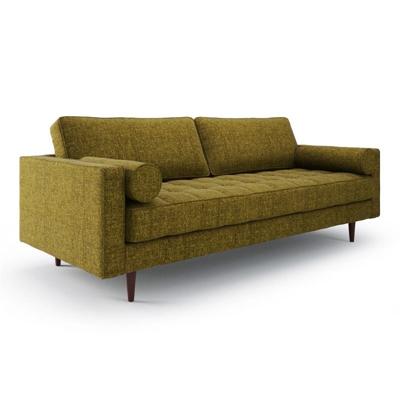 ![]() AEON Furniture - Sofas - AETH63Green - Incorporating classic lines with a streamlined silhouette, the Bloomfield sofa is the perfect combination of traditional design with a mid-century modern flair. A single seat cushion with a modern block-style tufting and two comfortably designed back cushions are perfectly completmented by two round bolster pillows. The tapered walnut stained conical legs provide ample support while adding style and sophistication. Finish: GreenMaterial: Wood and fabricClean classic linesStreamlined silhouetteSingle seat cushion with modern block style tuftingTwo individual back cushionsRound bolster pillows includedClassically designed for today's modern home or apartmentSpecifications:Overall Product Dimensions: 37"" H x 88"" W x 37"" DProduct Weight: 139 lbs Price: 1314.99 |