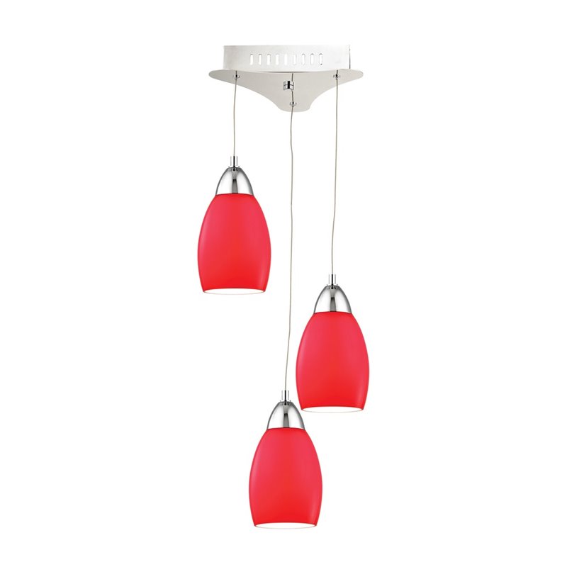 | Alico Buro 3 Light LED Pendant in Chrome with Red Glass |