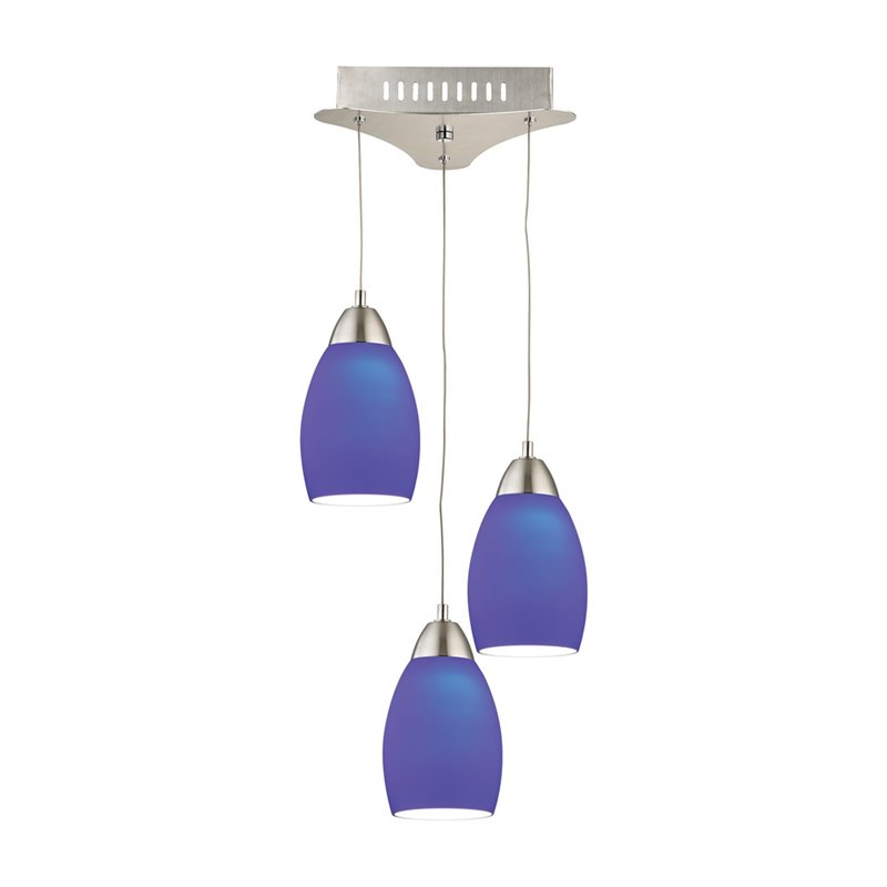 | Alico Buro 3 Light LED Pendant in Satin Nickel with Blue Glass |