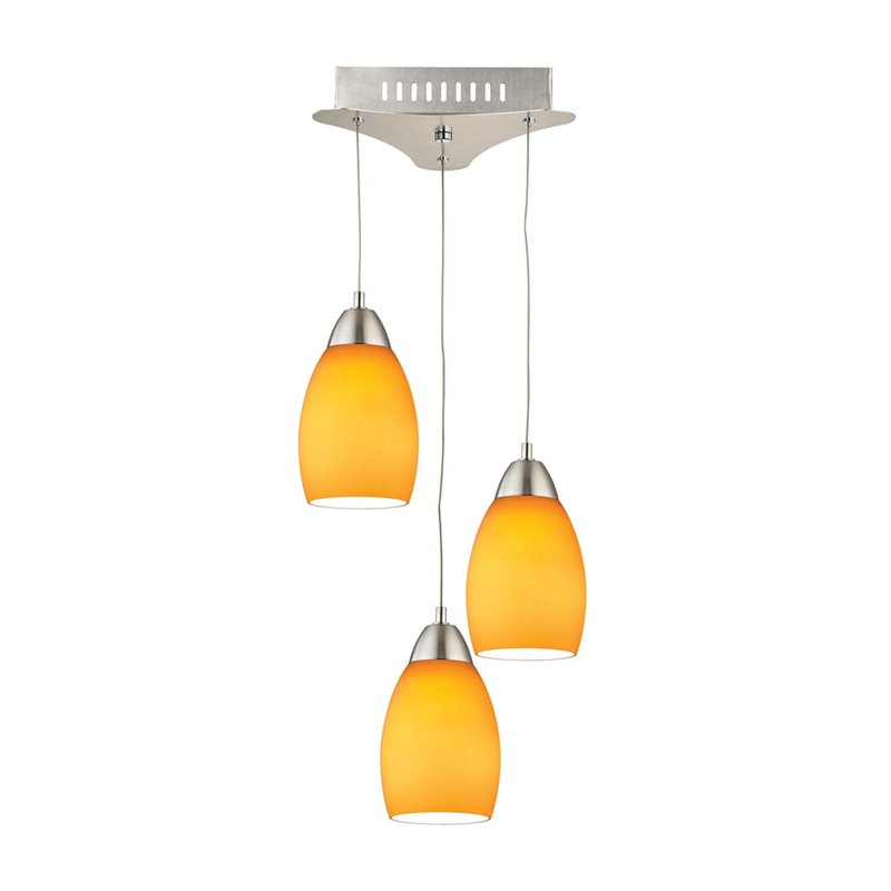 | Alico Buro 3 Light LED Pendant in Satin Nickel with Yellow Glass |