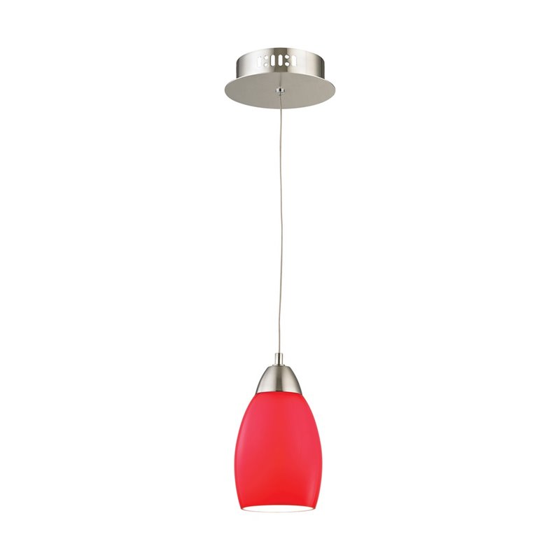 | Alico Buro LED Pendant in Satin Nickel with Red Glass |