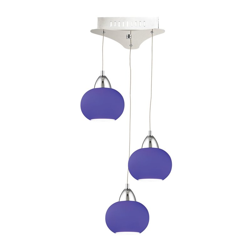 | Alico Ciotola 3 Light LED Pendant in Chrome with Blue Glass |