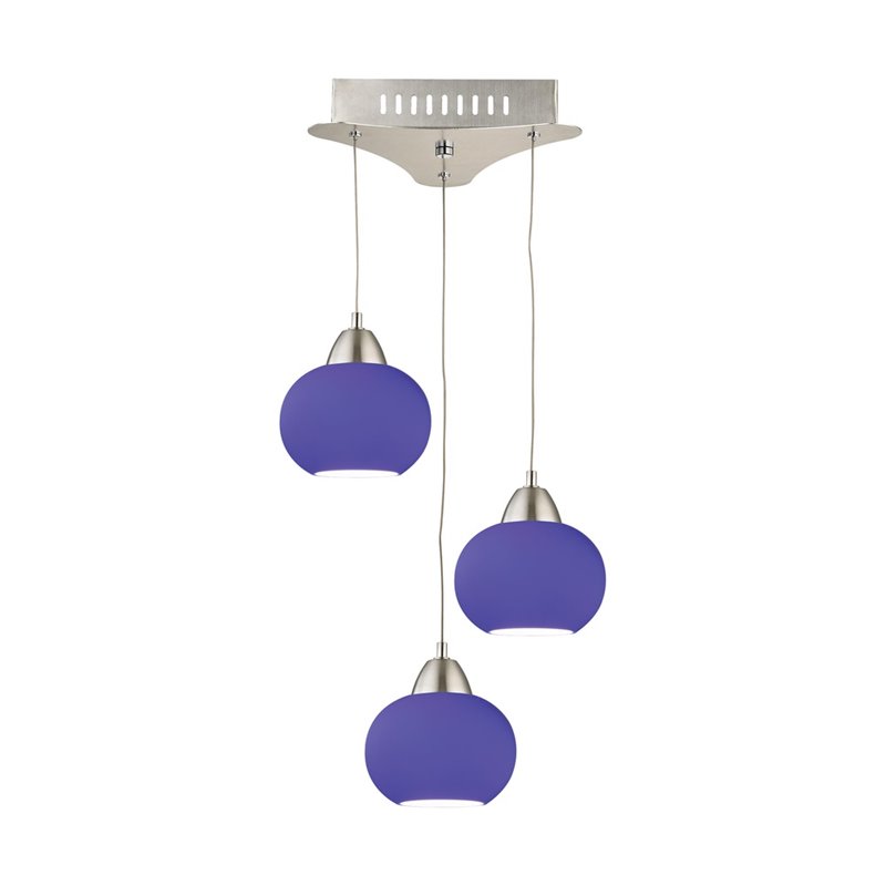 | Alico Ciotola 3 Light LED Pendant in Satin Nickel with Blue Glass |
