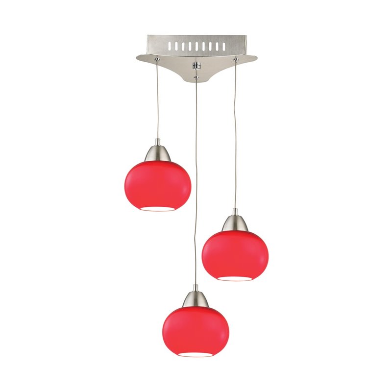 | Alico Ciotola 3 Light LED Pendant in Satin Nickel with Red Glass |