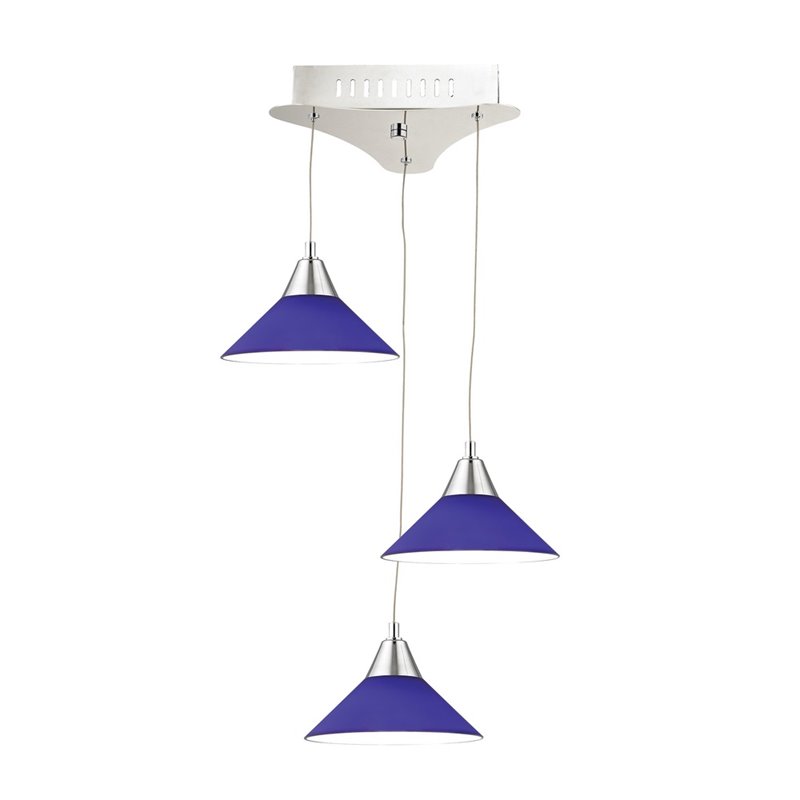 | Alico Cono 3 Light LED Pendant in Chrome with Blue Glass |