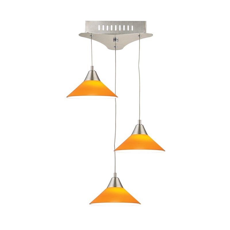 | Alico Cono 3 Light LED Pendant in Satin Nickel with Yellow Glass |