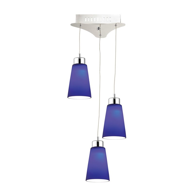 | Alico Coppa 3 Light LED Pendant in Chrome with Blue Glass |