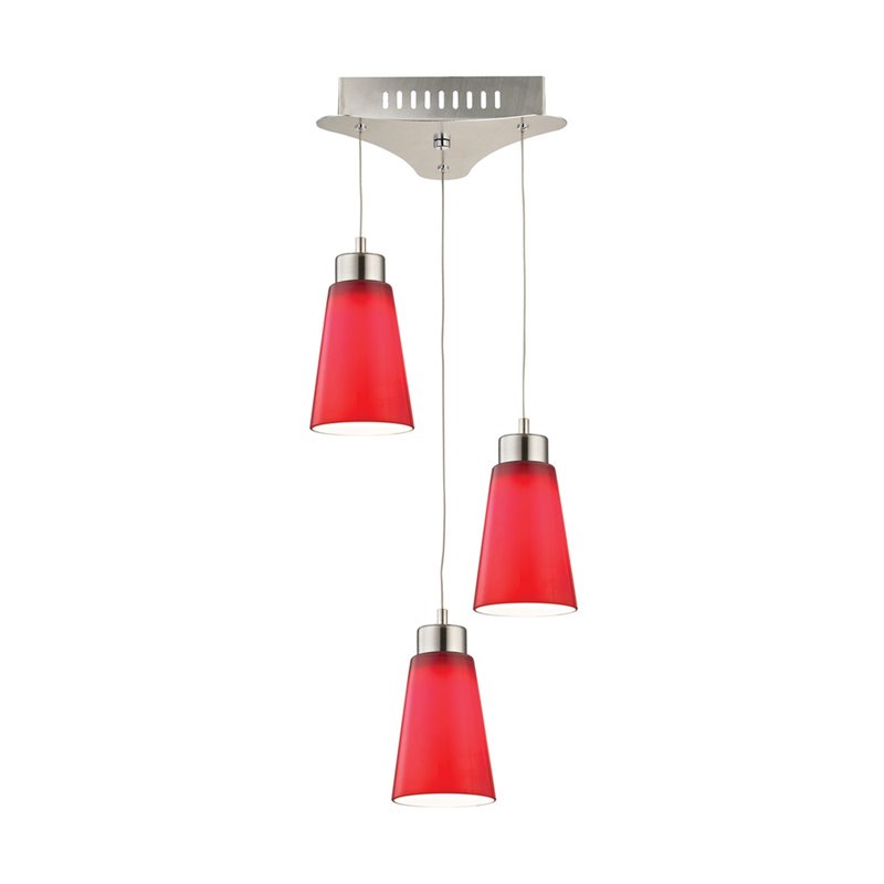 | Alico Coppa 3 Light LED Pendant in Satin Nickel with Red Glass |