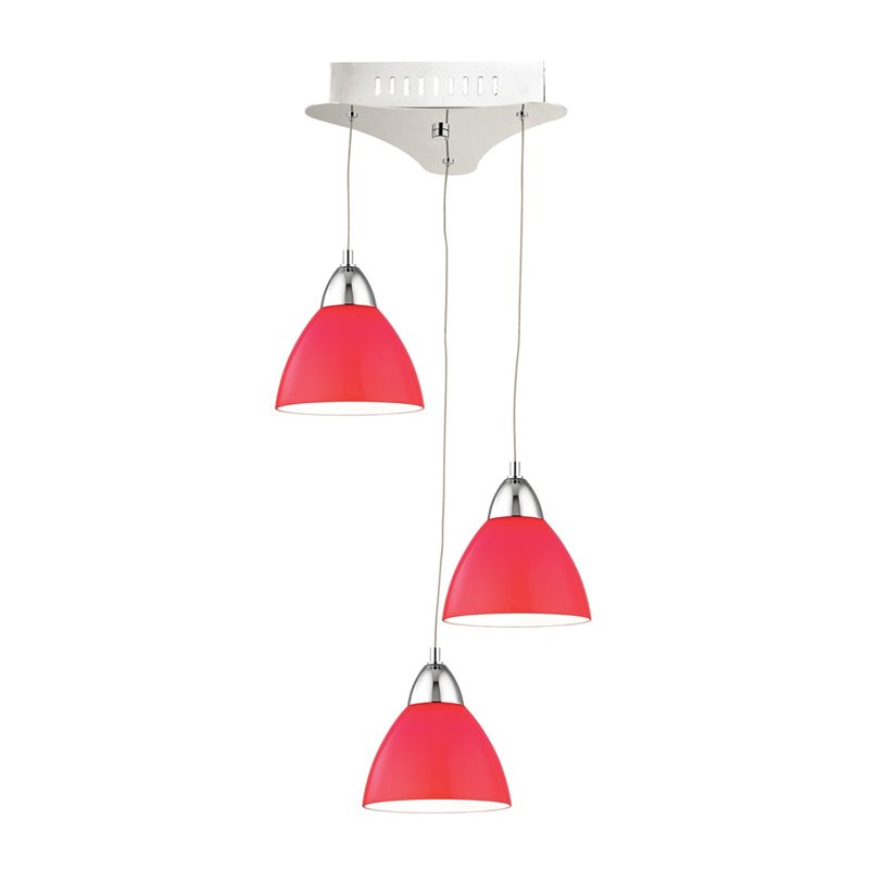 | Alico Piatto 3 Light LED Pendant in Chrome with Red Glass |