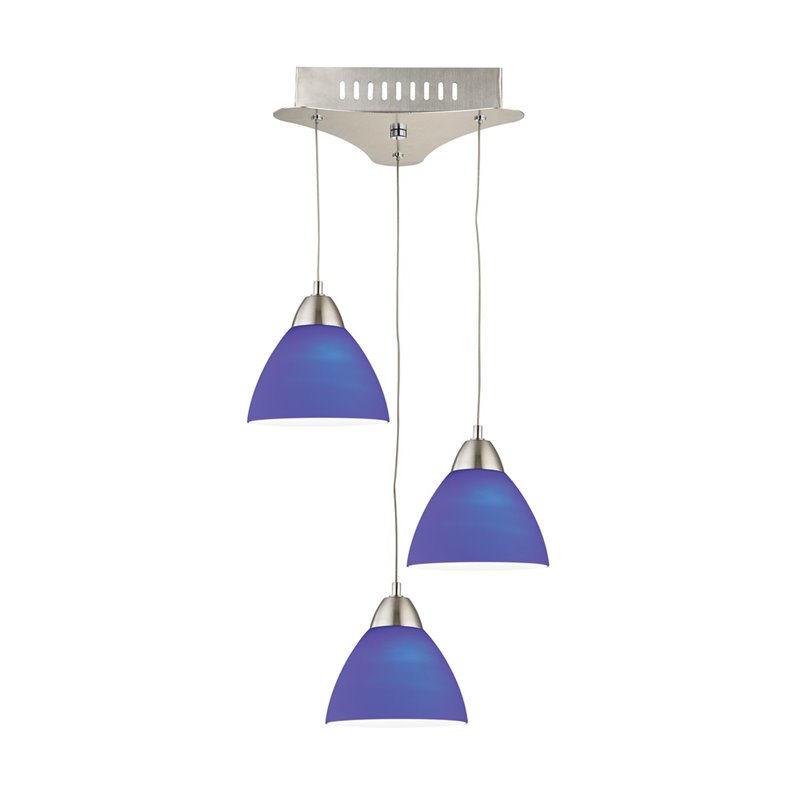 | Alico Piatto 3 Light LED Pendant in Satin Nickel with Blue Glass |