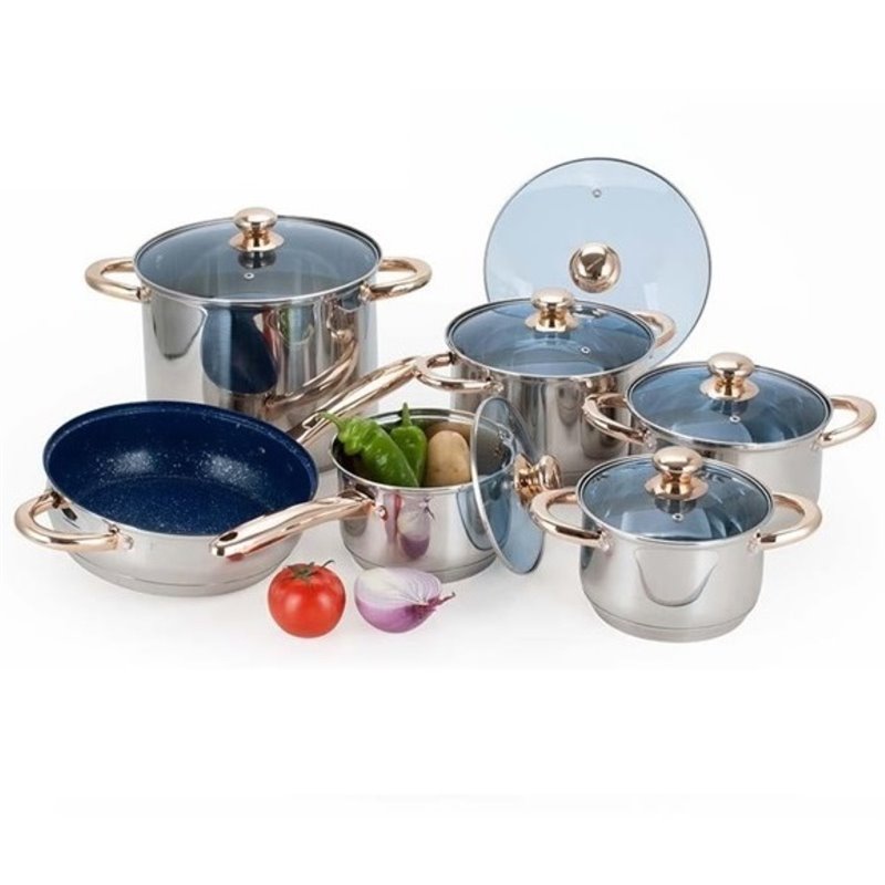 | Alpine Cuisine 12 Piece Stainless Steel Cookware with Gold Accents |