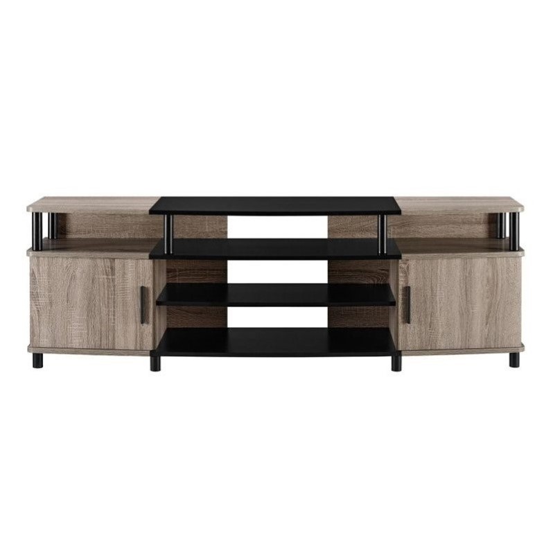 ![]() Ameriwood Home - TV Stands - 1751196PCOM - Elevate your entertainment space with this great-looking contemporary TV stand. Designed to accommodate most flat-panel TVs up to 70 inches, the Carson TV Stand creates a sleek and stylish showcase for your home theater system. The TV stand features multiple open shelves for numerous A/V components, such as your DVD player, cable box and gaming systems. Two side cabinets provide additional space for storing movies, music, video games, gaming controllers and other items. Run wires easily and neatly through the large holes in the back of the unit. The TV stand is designed in a rich Sonoma Oak finish, accented with black hardware. The contemporary silhouette is perfect for modern interiors, as well as transitional and casual spaces. Easy to assemble. Assembly Required.Finish: Sonoma OakMaterial: Metal,Paper and PBSpecifications:Overall product dimensions: 20.47""H x 62.99""W x 15.75""DProduct weight: 84 lbs Price: 196.99 |
