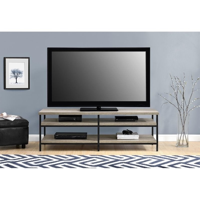 ![]() Ameriwood Home - TV Stands - 1763096PCOM - Organize all your media with the Altra Elmwood 60"" TV Stand. This modern TV Stand features 4 spacious shelves to fit all of your components, from your DVD player to your gaming system. The top surface can accommodate a flat panel TV up to 60"" with room to spare for your cable box. Bring this appealing design into your living room, family room or media room. The textured Sonoma Oak finish and Black metal legs bring an instant upgrade to any space. Altra Elmwood 60"" TV Stand requires assembly upon delivery.Finish: Sonoma OakMaterial: Metal, Paper, PBAccommodates most flat panel TVs up to 65"" (100 lbs)4 large open shelves hold AV components and gaming consolesSturdy metal powedercoated legs3D textured paper laminate finishThick hollow core like shelvesAssembly RequiredSpecifications:Overall Product Dimensions: 19.69"" H x 60"" W x 17.72"" DWeight: 69.64 lbs Price: 188.99 |