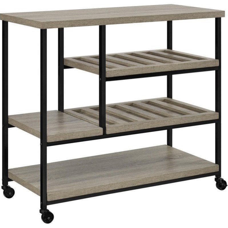 ![]() Ameriwood Home - Kitchen Carts - 5285096PCOM - Altra Elmwood Multi-Purpose Rolling Cart can be used wherever you need extra storage space. With 4 large casters, this Cart moves easily from room to room. Take advantage of all the spacious shelves this cart has to offer. Two of the shelves even offer slats to keep bottles from rolling, making this cart a great addition to your kitchen. The textured Sonoma Oak finish and Black metal legs bring an instant upgrade to any space. Altra Elmwood Multi-Purpose Rolling Cart requires assembly upon delivery.Finish: Sonoma OakMaterial: Metal,Hollow CoreStyle: TransitionalAltra Elmwood Multi-Purpose Cart is ideal for creating extra storage space in any roomUse this item as a mini bar to hold wine bottles, glassware and serving accessories or The 2 medium sized shelves include slats to keep bottles in placeTransportation from room to room is easy with the 4 large castersTwo of the casters lock to ensure that the Cart stays in place once you’ve found the perfect spotUse this item in your kitchen to store small kitchen appliances and extra dishesAssembly requiredSpecifications:Overall Product Dimensions: 33.9"" H x 36"" W x 17"" D Product Weight: 58.3 lbsElegant textured Sonoma Oak finish with Black metal accents brings a modern, yet classic vibe to your roomLaminated hollow core shelves with powder-coated metal legs are both sophisticated and durableRolling Cart includes 2 large shelves, 2 medium shelves, and 1 small shelf Price: 166.99 |