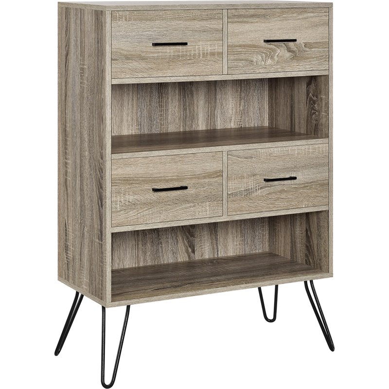 ![]() Ameriwood Home - Bookcases - 9654096PCOM - Store all your favorite items on the Altra Landon Bookcase with Bins. This unique Bookcase has both open and concealed storage to fit all your needs. Altra Landon Bookcase with Bins requires assembly upon delivery.Finish: Sonoma Oak and Gunmetal GrayMaterials: Wood, PB, PaperAltra Landon Bookcase with Bins will help you stylishly organize your lifeUse this Bookcase in your home office, bedroom or den to create more storageSmall footprint makes this Bookcase ideal for apartments, bedrooms or dorm roomsFour fabric bins with wood grain fronts and metal handles hold your office suppliesTwo large open shelves are perfect for stacking books, binders and other essentialsUnique Bookcase is designed with modern lines and trendy metal hairpin-style legsLight Sonoma Oak wood grain finish and Gunmetal Gray legs bring an instant update to any roomAssembly requiredSpecifications:Overall Product Dimensions: 43.7""H x 30.9""W x 14.1""DProduct Weight: 63 lbs Price: 132.99 |