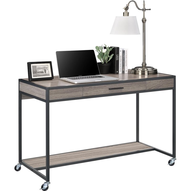 ![]() Ameriwood Home - Home Office Desks - 9834196PCOM - The Altra Mason Ridge Mobile Desk with Metal Frame combines a modern and industrial look with functionality, offering convenient work space anywhere you place it. Roll out the Mason Ridge Mobile Desk when you are ready to work and move it aside when you are finished to save space. Four convenient rolling casters make this desk perfect for any room or home office. Acceptable for contemporary interiors, this unmistakably modern Desk features clean lines and a light Sonoma Oak finish with an industrial style Black metal frame. A pull out drawer provides convenient storage of essential papers, files or work supplies. The wheeled desk also has a lower storage shelf for books, magazines and more. The top surface is large enough for your laptop, lamp and other decorative items. Altra Mason Ridge Mobile Desk with Metal Frame requires assembly upon delivery.Finish: Sonoma Oak and Black; Material: Laminated MDF and particleboard with powder coated metal frame; Roll your office space anywhere within your home with the Altra Mason Ridge Mobile Desk with Metal Frame; Desk top holds your laptop, lamp and decorative items; Drawer is the perfect size for notebooks, files and other office essentials; Lower shelf provides extra storage for books, binders and magazines; Four rolling casters make it easy to utilize the Desk and move it to any room in your home or office without the heavy lifting; A Sonoma Oak finish with a contrasting Black powder coated metal frame makes this Mobile Desk the perfect mix of modern and industrial; Desk looks great in any interior – from designer inspired to causal basement rec room; Assembly required. Specifications:Overall Product Dimensions: 29.5"" H x 44"" W x 21.5"" DProduct Weight: 51 lbs Price: 170.99 |