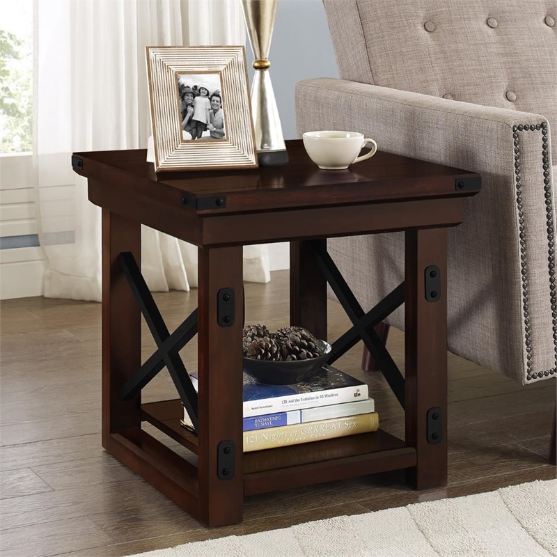 | Altra Wildwood Wood Veneer End Table in Mahogany |