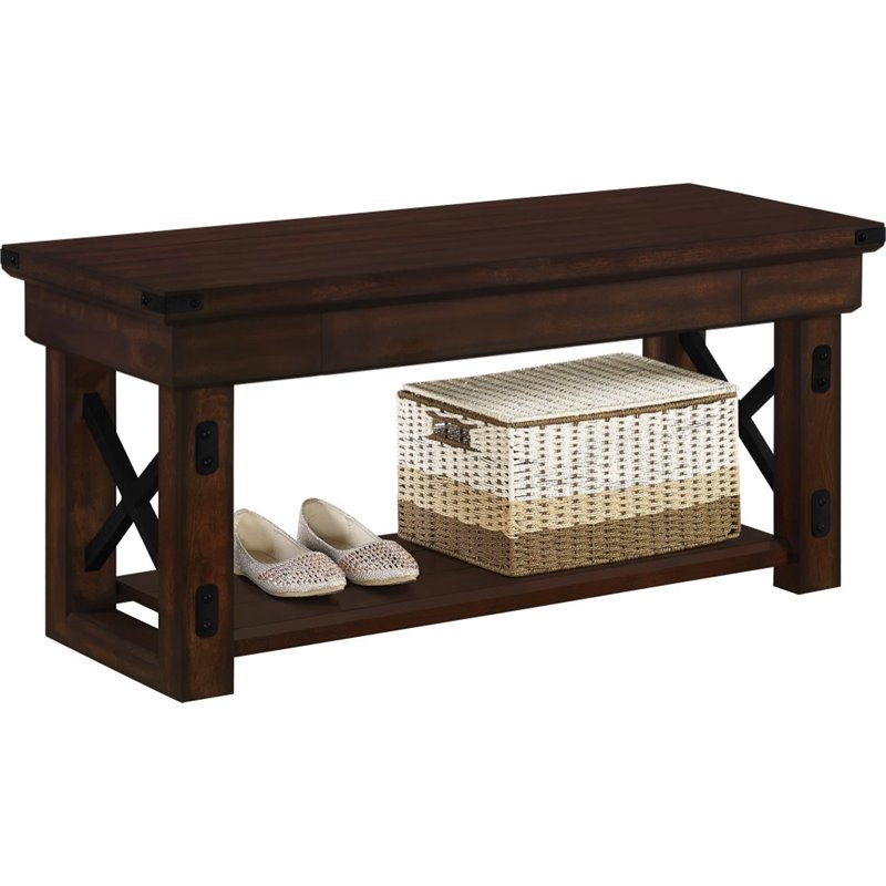 | Altra Wildwood Wood Veneer Entryway Bench in Mahogany |