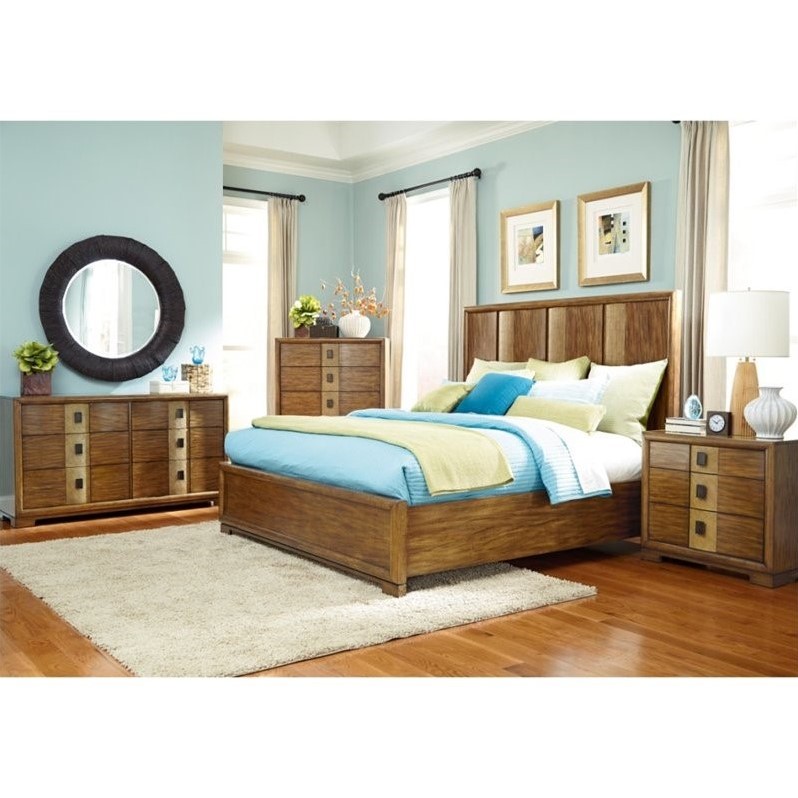 | American Drew Grove Point 5 Piece Wood Bedroom Set in Warm Khaki |