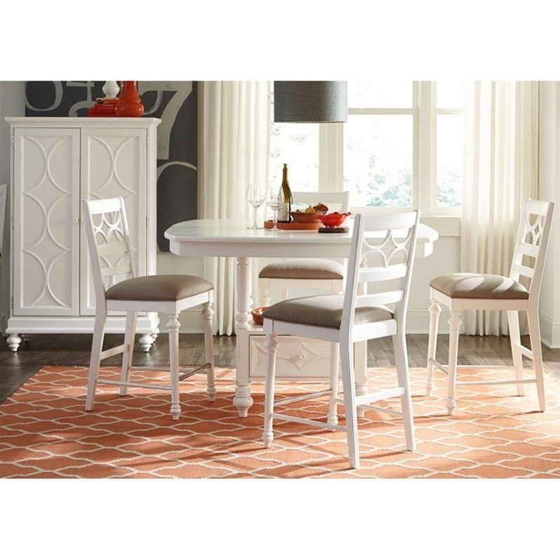 | American Drew Lynn Haven 6 Piece Wood Counter Height Pub Set in White |