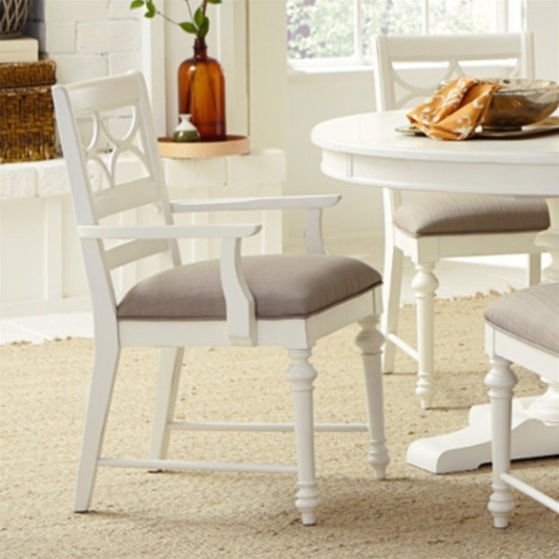 | American Drew Lynn Haven Wood Fret Back Arm Chair in White |