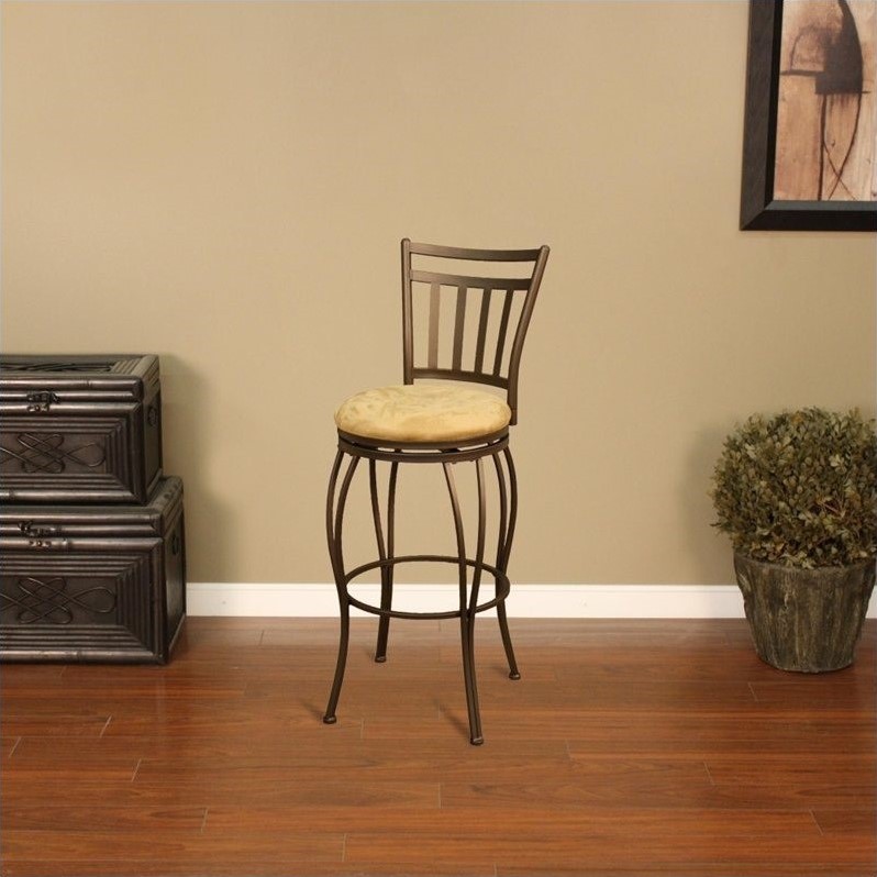 ![]() American Heritage Billiards - Bar Stools - 124831TZM42 - American Heritage Barstools Folio Traditional Counter Stool Finished in Topaz with Camel MicrofiberThe perfect stool for your new space. This simple yet functional swivel stool will compliment any décor.Swivel stoolFull swivelFloor glidesShips ""knock down""1 year warrantyMinimum order quantity: 1Assembly requiredSpecifications:Weight: 15 lbs.Overall dimensions: 37.75H x 17W x 19D inchesSeat height: 24 inches360 degree swivel Price: 99.99 |