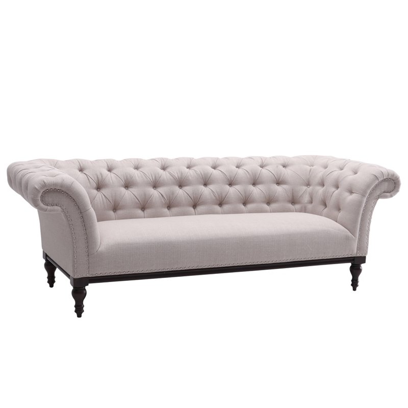 ![]() Armen Living - Sofas - LCAV3SA - Our elegant Avery Sand Sofa collection pays homage the 18th-century forbearer sofa style and makes a statement in any living or family room. It is button-tufted with rolled English arms and finished with silver nail head trims for added texture, depth and luxury. It comes with dark brown rounded legs that add that vintage-inspiration to it. It’s exaggerated shape and plush linen blend fabric in a subtle way takes us back in time, without compromising on being able to fit into any modern and contemporary space.Finish: SandModernizes any living room with a vintage inspirationSeat back button tufting, Silver nail head trims and bowler finished legsSand colored fabric upholstery with a soft and lightly textural feelSturdy construction for years of enjoymentSpecifications:Overall Product Dimensions: 31"" H x 95"" W x 37"" DSeat Height: 17"" HManufacturer's 1 Year Limited Warranty Price: 1399.00 |