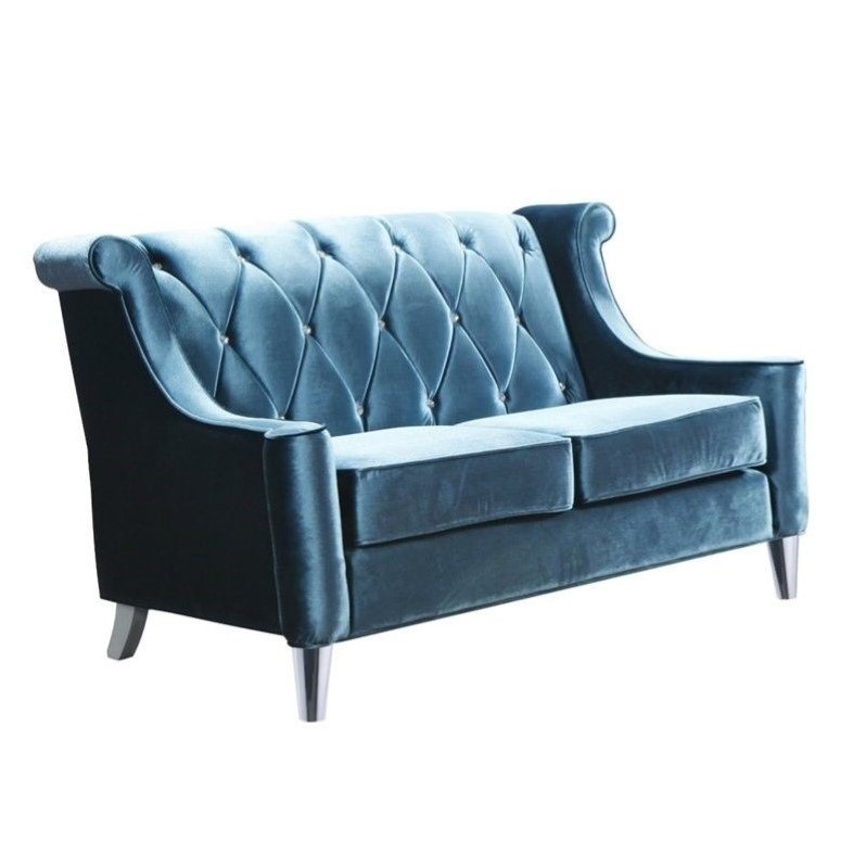 | Armen Living Barrister Loveseat with Crystal Buttons in Blue Velvet |