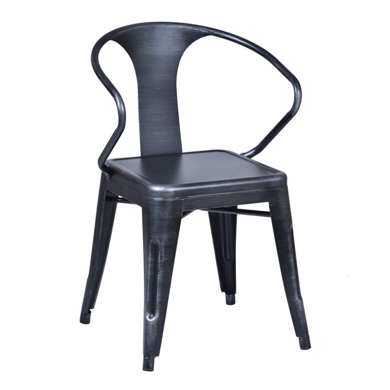 | Armen Living Berkley Arm Chair in Industrial Grey Steel (Set of 2) |