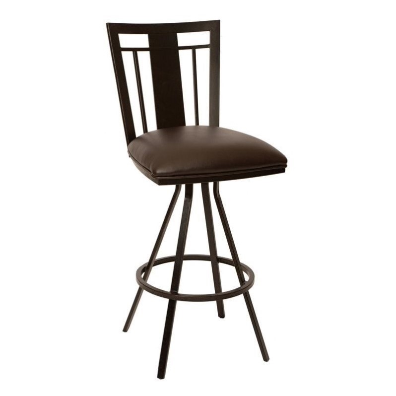 | Armen Living Cleo Faux Leather Metal Swivel Counter Stool in Coffee |