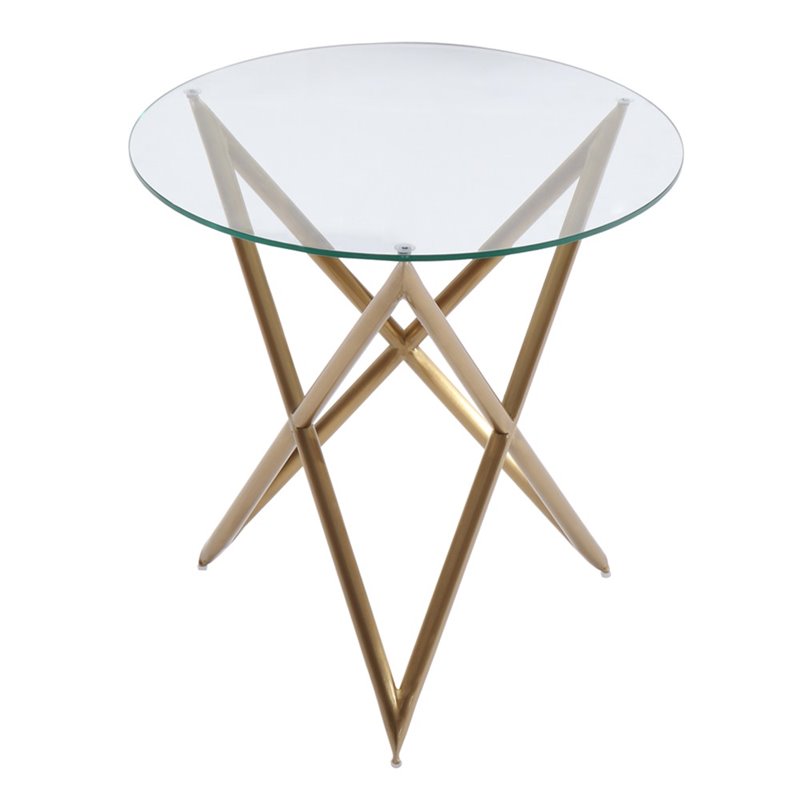 | Armen Living Crest Round Glass Top End Table in Brushed Gold |