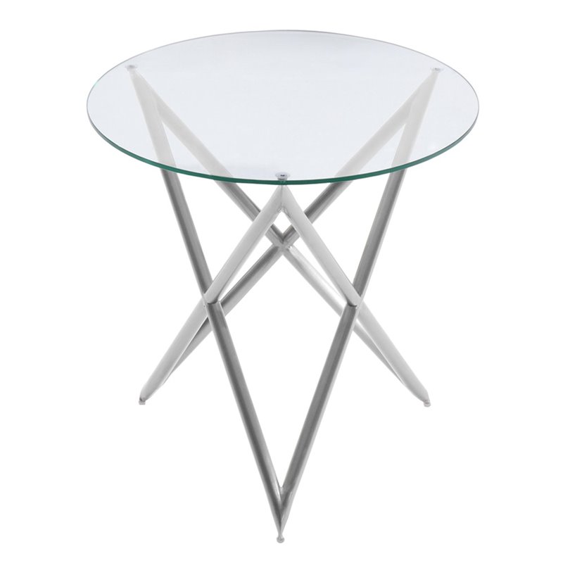 | Armen Living Crest Round Glass Top End Table in Brushed Steel |