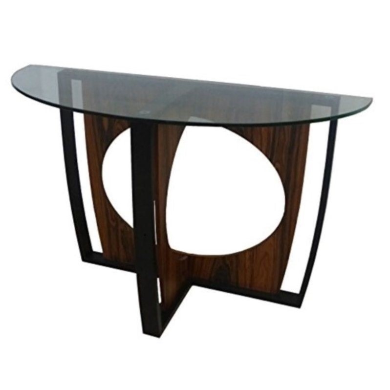 | Armen Living Decca Oval Glass Top Console Table in Brown |