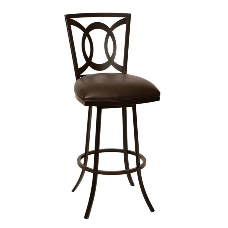 | Armen Living Drake Faux Leather Metal Swivel Bar Stool in Coffee |