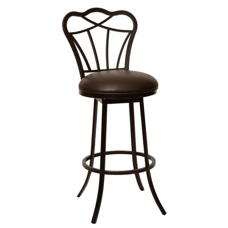 | Armen Living Galvin Faux Leather Metal Swivel Bar Stool in Coffee |