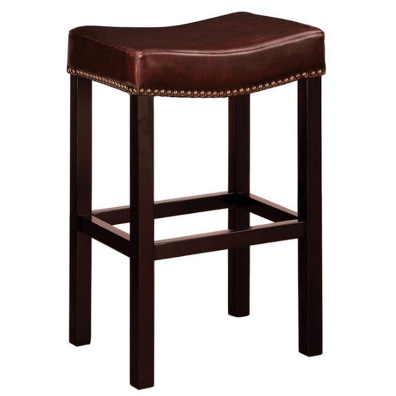 | Armen Living Tudor 30"" Backless Stationary Bar Stool in Brown Leather |
