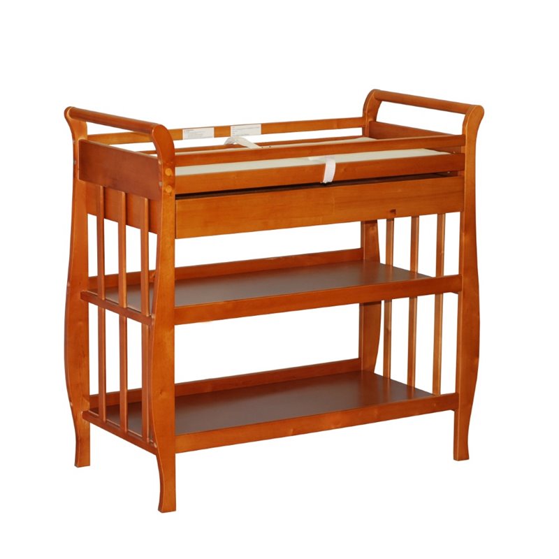 ![]() AFG Baby Furniture - Baby Changing Tables - 3353P - The Nadia Changing Table is constructed of solid pine wood available in a variety of classic finishes. The sleigh style changing table is designed with safety and comfort in mind. Storing your baby necessities has never been easier with the attached drawer, which glides smoothly over metal runners, and two open shelves for other items. A smooth sleigh style changing table can be paired with any Athena crib. Finish: PecanMaterials: Made of Solid Pine HardwoodEasy-to-care non-toxic finish 1 drawer with metal glides2 shelves for your baby needsComes with metal support under changer top to enhance baby safety1 Year Limited Manufacturer WarrantySpecifications:Overall Product Dimensions: 39 "" H x 38 "" W x 19 "" DOverall Product Weight: 36 lbs Price: 112.99 |